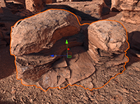 Actual desert formations are scanned. The high detail scan then goes through a tedious manual process to convert it for use in the Unity game engine. Expect only the best from Goatogrammetry!
